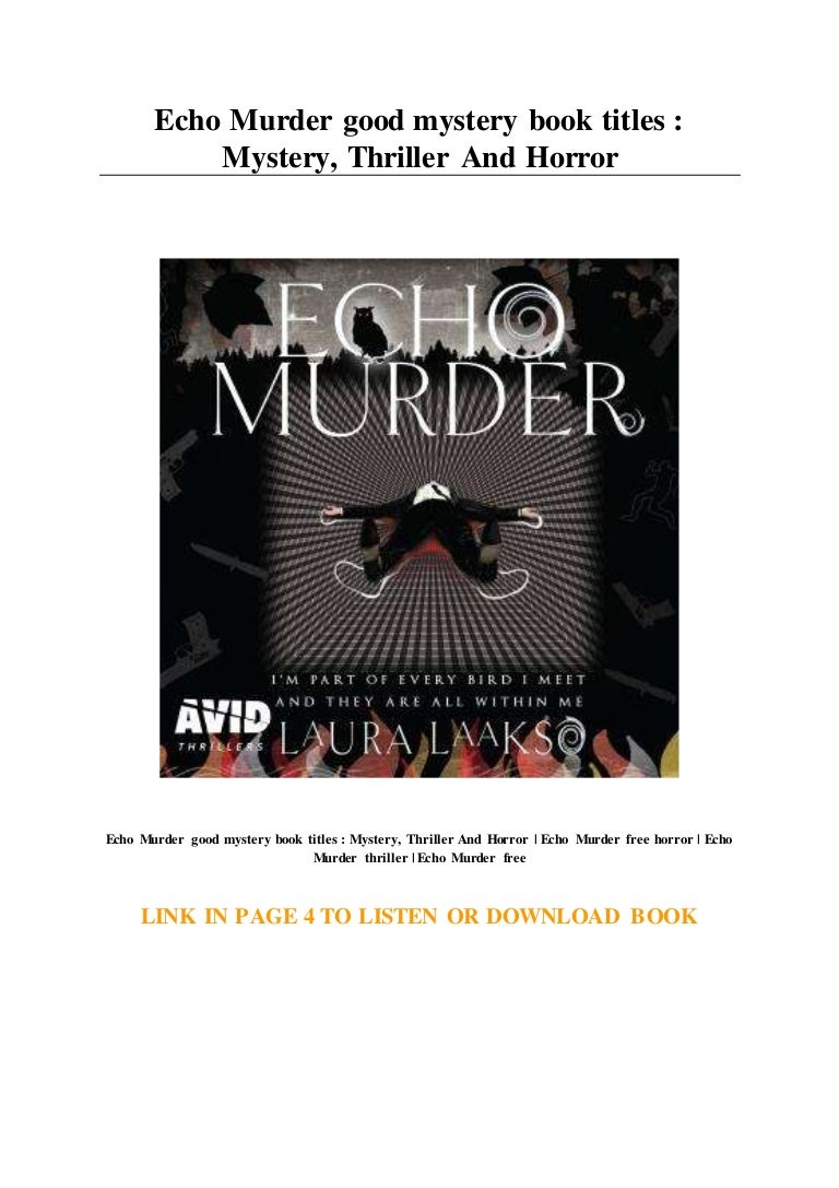 Echo Murder good mystery book titles : Mystery... Thriller ... from cdn.slidesharecdn.com These mystery novels include the 15 best books from every part of the genre to read: These new book releases are great for fans of mysteries and thrillers. By dena at batch of books; If more contemporary time periods are her thing, there's the three investigators series. After catching a killer at her high school, she's back at home for a normal (that means boring) summer. In the woods is the first novel by tana french and won several awards. This is one of the best murder mystery books i have read. From the books that left us guessing until the final page to the ones that broke our hearts.
