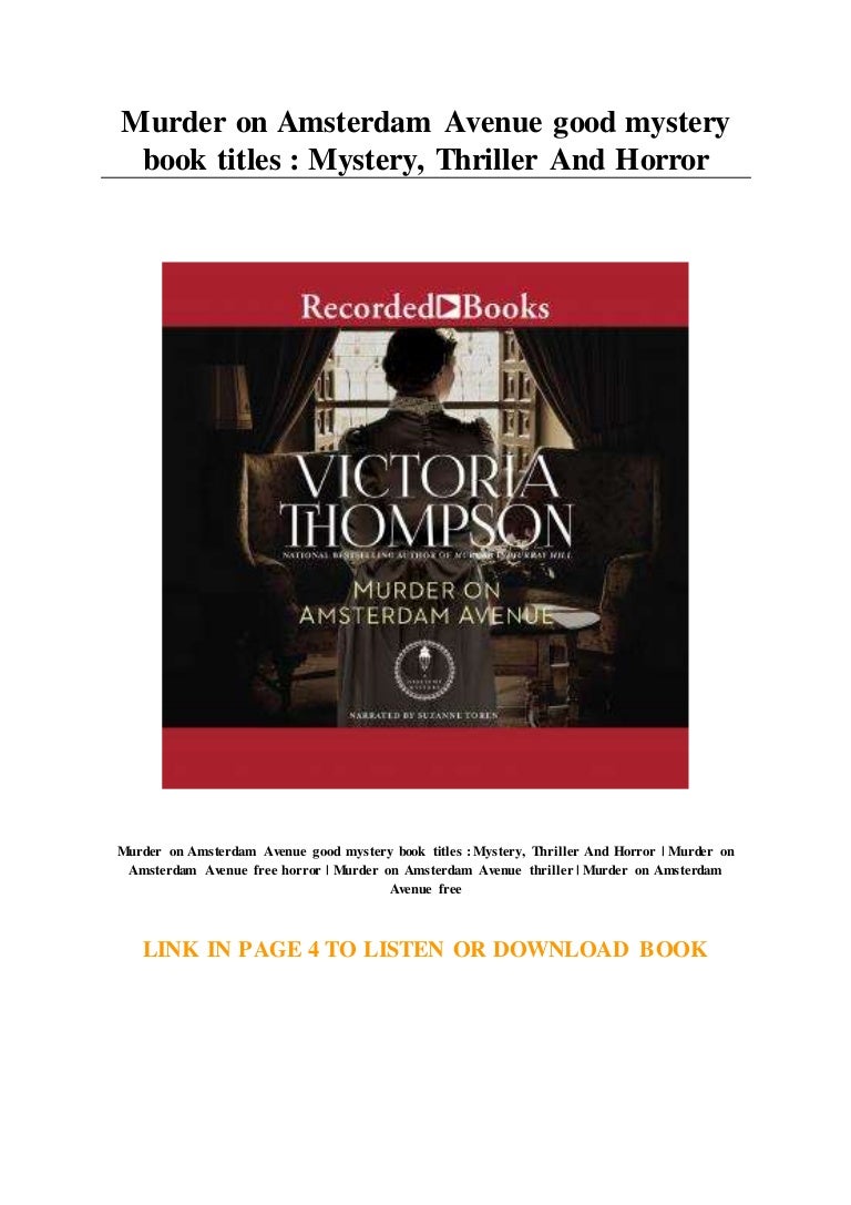 Murder on Amsterdam Avenue good mystery book titles ... from cdn.slidesharecdn.com In the woods is the first novel by tana french and won several awards. The case is assigned to detective adam and his partner detective cassie. People like us by dana mele. The box in the woods by maureen johnson. Ya literature often excludes extremely graphic. Enjoy this list of the best new mystery books and thriller novels out for summer 2020. This is one of the best murder mystery books i have read. Perfect for fans of one of us is lying, e.